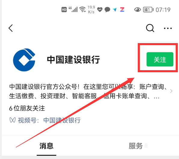 点击右上角的三个点,就会进入“中国建设银行”公众号的简介页面。