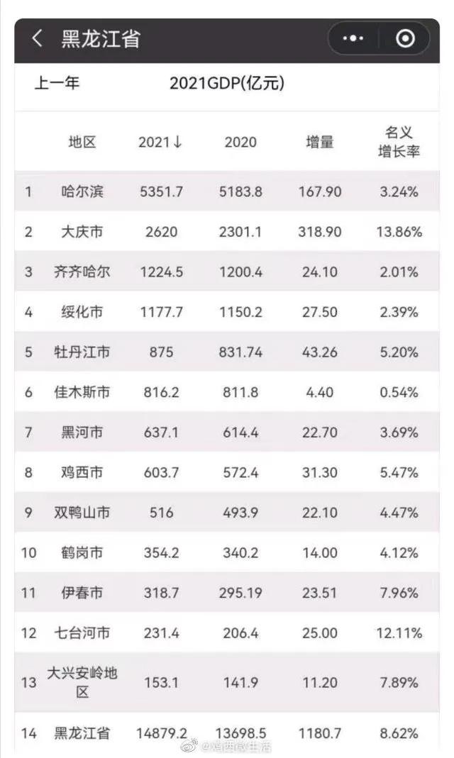 黑龙江是人口流出大省,也是中国粮仓,主要以农业为主,冬天气候寒冷,经济的发展动力不足,虽然哈尔滨是省会,但一个地方改变不了一个省的发展。