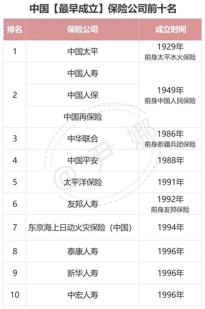 我国成立时间最久的保险公司,是中国太平,前身是成立于1929年的太平水火保险。