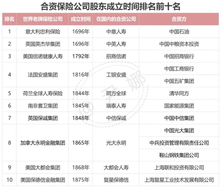 其中有些世界性老牌保险公司,在中国加入WTO、放开保险行业时,进入中国,和国内大型企业集团合资设立保险公司,把他们先进的保险服务模式、理念都带到了中国。比如: