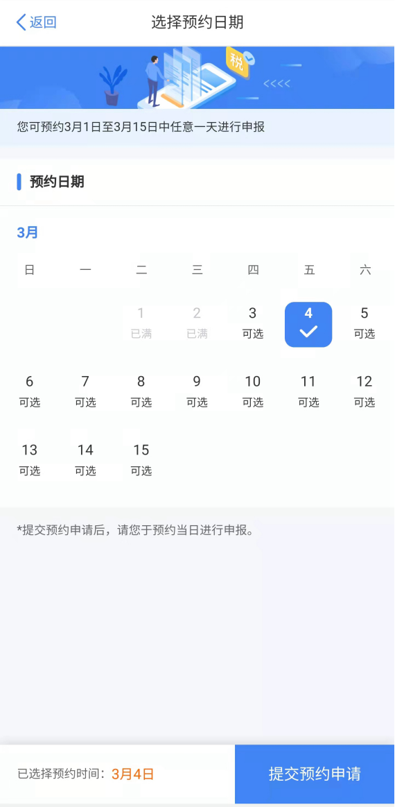 可以预约接下来半个月的任意一天,不过前两天的已经约满了。
