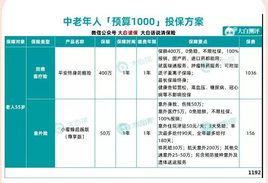 1.五六十岁买百万医疗险,实际上每年的保费也就1000多。