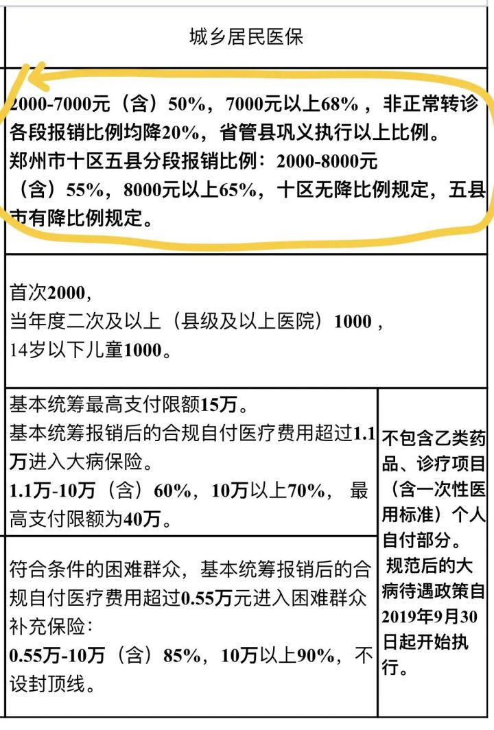 城乡居民报销比例