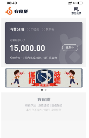 口子介绍:最近的衣食贷同样是属于比较热门的下款产品,因为在市场上反馈的提现借款到账的用户还是很多的,大部分用户目前提交了之后都是隔天放款到账,比较稳定。界面和盈盈有钱类似,但是运营主体不是同一个主体,据反馈该产品和盈盈有钱有一定的关系,具体什么关系小编目前也不是清楚,但是有一点可以肯定就是额度不共享,目前已有不少盈盈有钱下款的用户该产品也审核通过了,当然按照以往盈盈有钱的惯例,到账应该都是隔天11点左右到账。该口子和盈盈有钱是一样的,申请时是不查征信的,至于后续是否上征信,目前小编也还未知,最高额度50000,下款额度普遍是3000到20000,借款期限3-12期,提交资料后也是不打回访电话的,有需要的可以去申请试试。