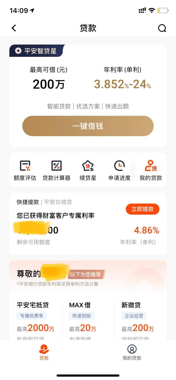 3、平安银行,白领贷,白金卡优惠后的年利率4.68%