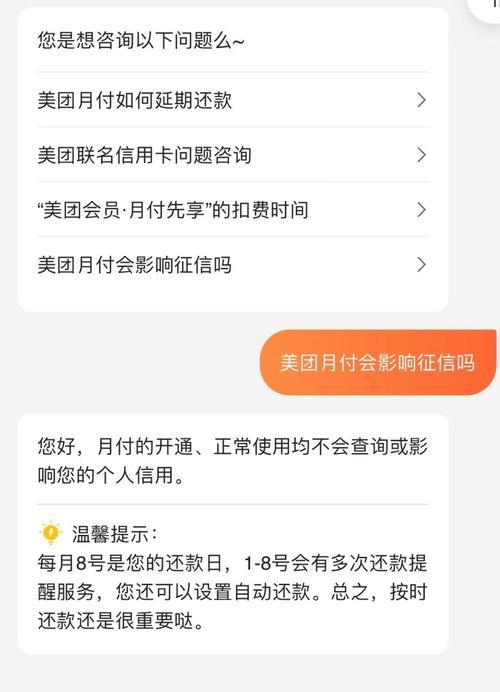 美团月付是美团推出的一项消费信贷服务,用户可以在美团上选择“月付”选项,将消费金额分期付款。那么,美团月付上征信吗?逾期后果有哪些?