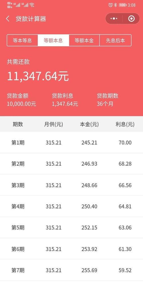 以贷款利率为5%为例,贷款5万分36期,等额本息还款方式的月均还款金额约为1,389元。等额本金还款方式的月均还款金额约为1,248元。