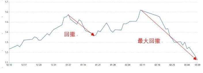 回撤是指投资组合在某一段时间内的净值从最高点到最低点之间的最大跌幅。例如,一个投资组合的净值从100元下跌到80元,那么它的回撤就是20%。