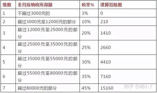 - 速算扣除数:根据《个人所得税扣除项目及标准》的规定,纳税人每月可享受的速算扣除数为: