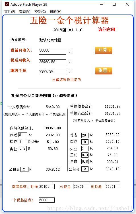 - 计算结果仅供参考,具体缴费金额以实际缴费为准