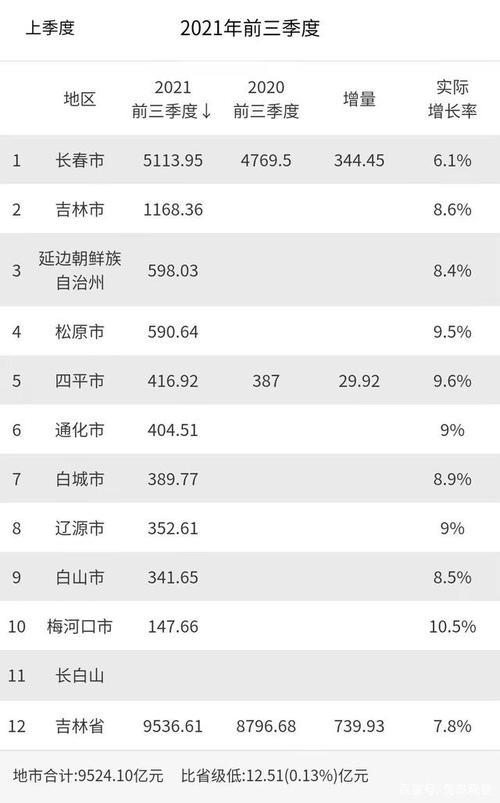 从同比增长率来看,吉林省各市GDP均实现了增长。其中,辽源市增长率最高,达到12.8%,其次是白山市、白城市和通化市,增长率均超过11%。