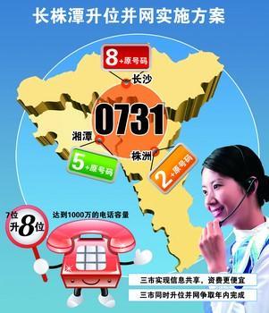长沙市区号前加“8”,株洲市区号前加“2”,湘潭市区号前加“5”。例如,原长沙市区号“0731-81234567”变更为“0731-881234567”,原株洲市区号“0731-2234567”变更为“0731-22234567”,原湘潭市区号“0731-5234567”变更为“0731-55234567”。
