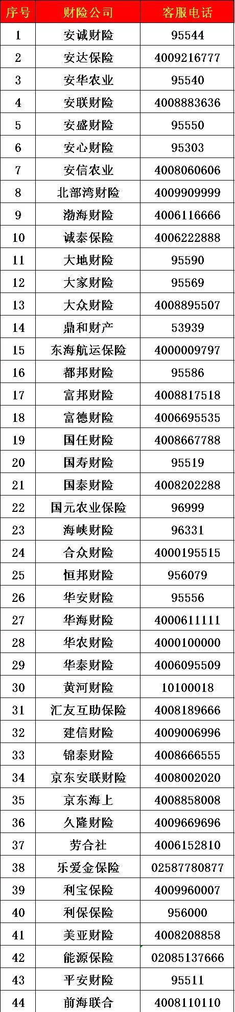 根据中国保险行业协会公布的数据,截至2023年底,我国共有12家财产保险公司具有车险业务资质。以下是2024年最新所有车险保险公司电话号码大全:
