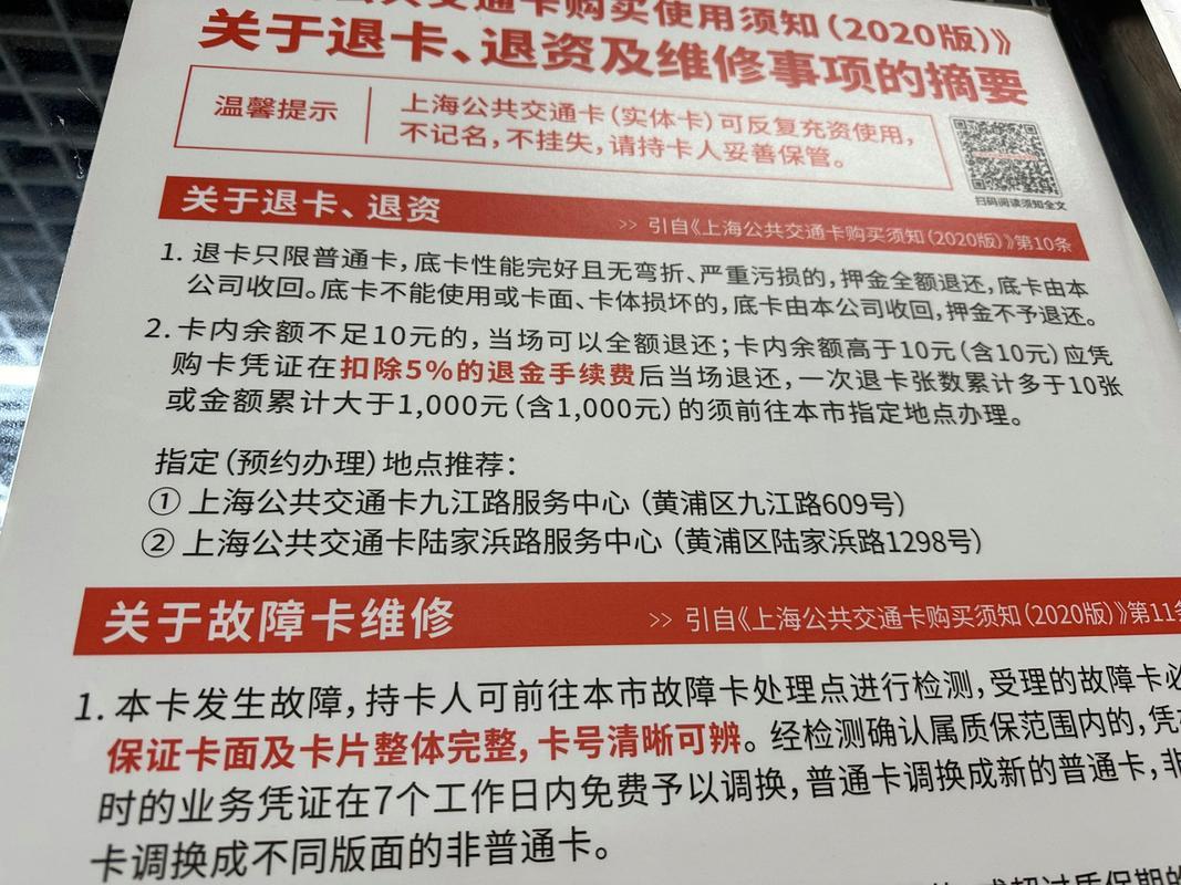 上海交通卡是上海市民出行必不可少的交通工具,但也有一些市民因出国、搬家等原因需要退卡。上海交通卡退卡只限普通卡,退卡要求为底卡性能完好且无弯折、严重污损的,押金全额退还,底卡由本公司收回。