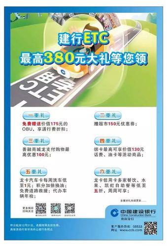 建设银行:通行费9.5折,赠送OBU、免费道路救援、洗车等