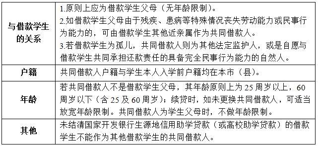 根据国家开发银行《生源地信用助学贷款管理办法》,共同借款人要求如下: