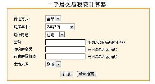 以某房产网站的二手商铺过户税费计算器为例,其使用方法如下: