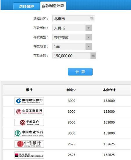 以15万元本金为例,分别计算不同利率下的一年定期存款利息: