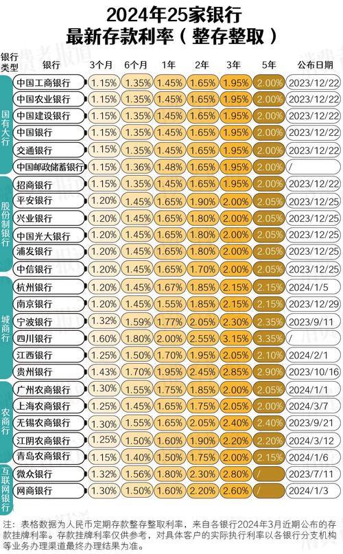 截至2024年3月18日,中国工商银行、中国农业银行、中国银行、中国建设银行和交通银行(即“五大行”)的定期存款利率如下: