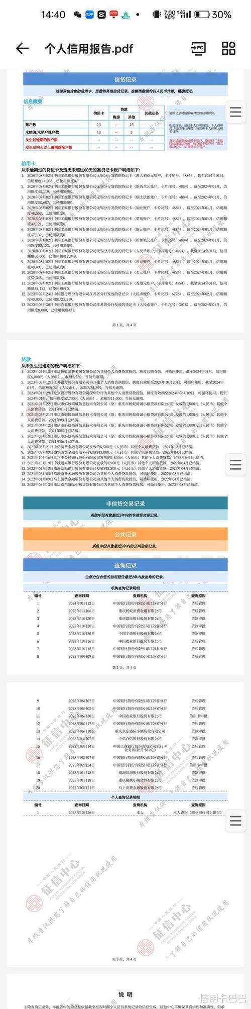 - 逾期记录: 逾期还款会记录在个人征信报告上,形成不良信用记录。