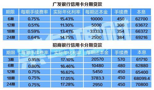 信用卡的利率一般为分期利率,以工行为例,其信用卡分期6期、12期、24期、36期的利率分别为0.75%、1.5%、2.25%和3%。而贷款的利率一般为年化利率,以工行为例,其首套房贷利率为5.95%,二套房贷利率为6.40%。