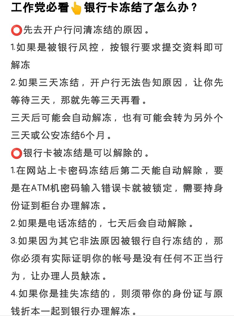 - 联系发卡银行。向发卡银行说明情况,并提供相关证明材料,如还款凭证等。发卡银行可能会根据您的具体情况,解除对银行卡的冻结。