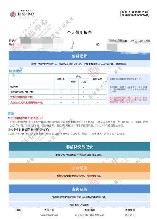 在贷款申请过程中,银行会查询借款人的征信报告,以了解其信用状况。征信报告中主要包含以下信息: