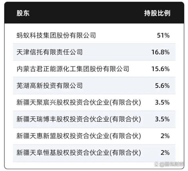 其他股东:除了蚂蚁集团和内蒙君正,天弘基金的其他股东还包括新疆天瑞博丰股权投资合伙企业、芜湖高新投资有限公司、天津信托有限责任公司等。这些股东的背景 diverse,涵盖了私募股权投资、地方国资等领域。