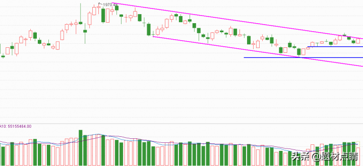 如图指数已经经过一段时间的向下通道调整,当前已尝试性突破上轨通道并进行回踩确认,如上图所分析,我们可以依据上图的分析对该板块的个股进行制定交易策略。我们可以在当前指数价位先介入部分仓位,如果后期指数进行继续回踩,我们可以在最上一条蓝色线附近进行个股的补仓交易,止损我们可以设置在上图最下一条蓝色线下方。