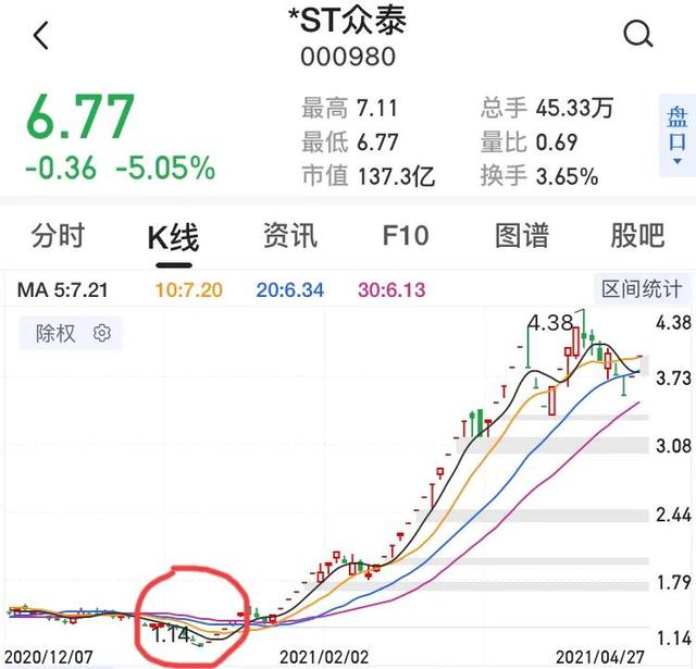 000980st众泰,在2021年1月11日,发出1.14元的盘口语言(神奇的日子,神奇的数字):要要死(如果把它改成发音:多多发),之后走出8倍股的妖股步伐。