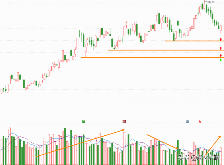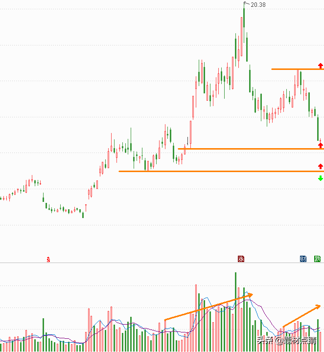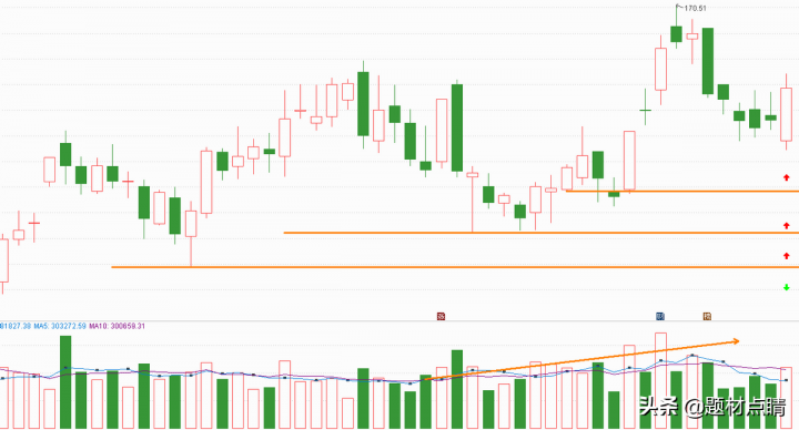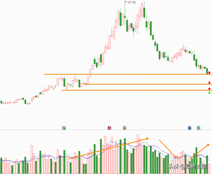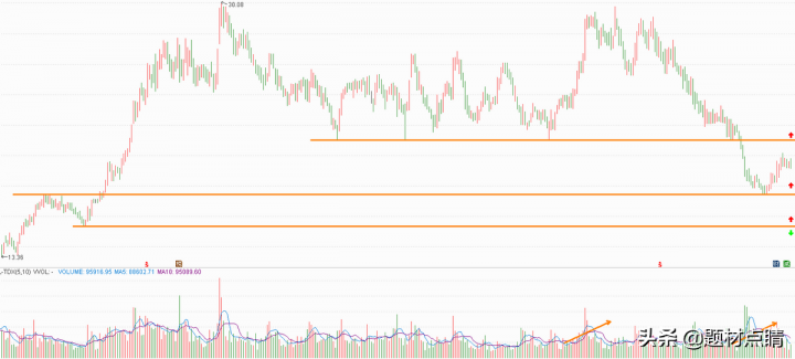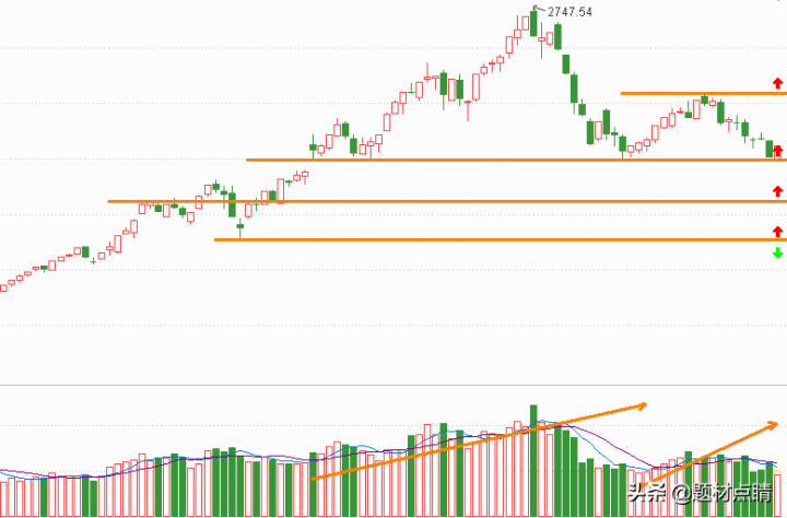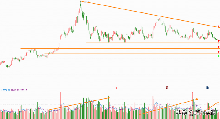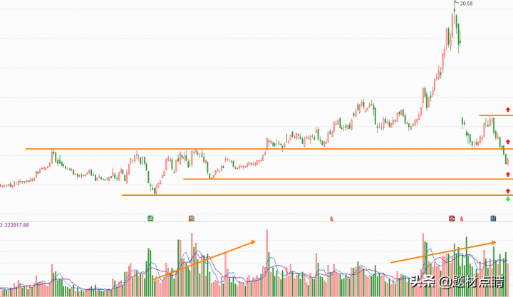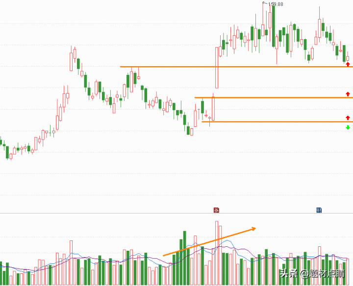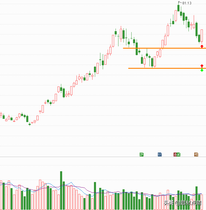 指数经过一段时间的向下回踩并达到当前支撑位附近,我们可以对当前的走势分析出重要压力支撑位(如上图),并以此为根据对个股进行制定相应的交易策略。上图红色箭头属于最佳的参与位,绿色箭头属于趋势反转的重要推出点位,但随着后期的发展可以及时地做出相应的调整。