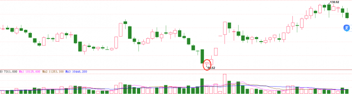 如果在低价位区域出现上吊阳线,股价表现出探底过程中成交量萎缩,随着股价的逐步攀升,成交量呈均匀放大态势,并最终以阳线报收,预示后市股价看涨。