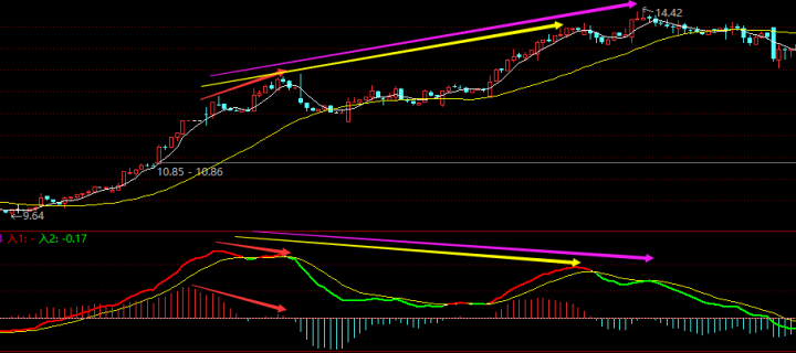 如果出现既有MACD的DIFF顶背离,同时伴随红柱顶背离,那么危险系数大,如果只有其中一种风险相对小一些。