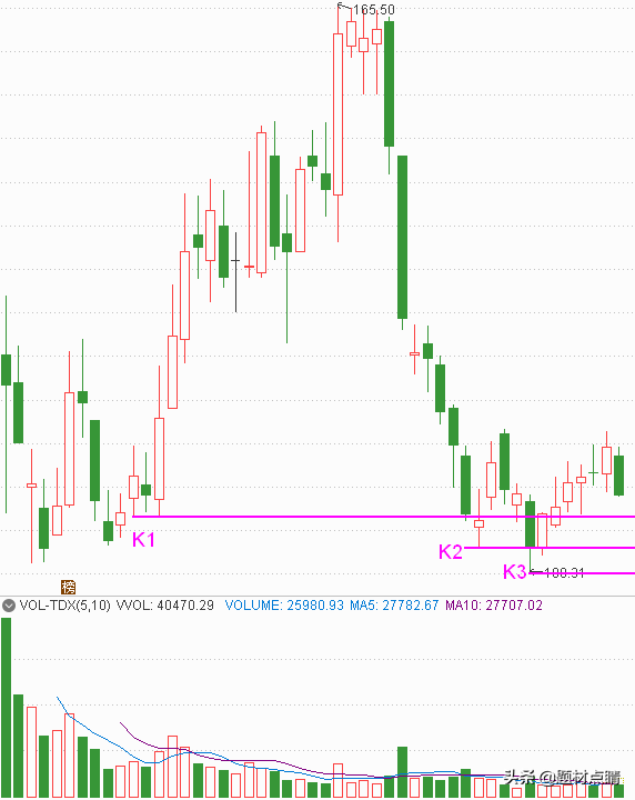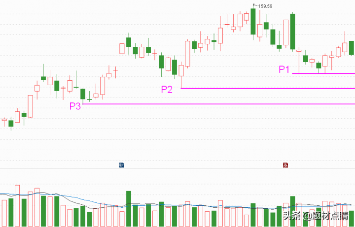 股价回踩至P1位置是受到了支撑,我们可以在当前价格位置进行介入一部分头寸,并在股价后期继续回踩时可以在P1、P2位置进行补仓,风险控制在P3下方附近。