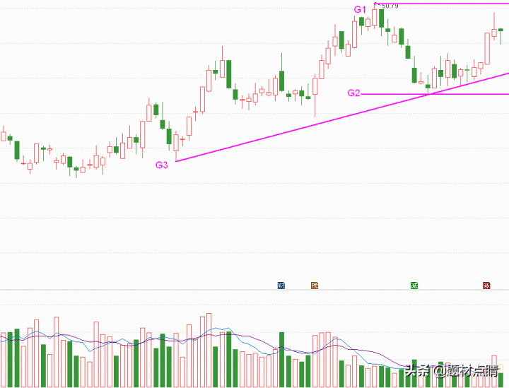 如上图所分析,当前股价不适合介入,等待股价回踩至G3趋势线附近或突破G1新高再进行介入,风险控制在G2位置下方附近。