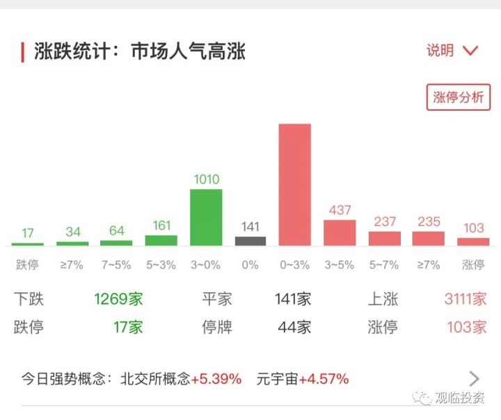 先来看看今天的市场,指数午后震荡盘整,创业板指午后率先翻绿,半导体及元件、新能源汽车、光伏等多板块持续活跃,元宇宙集体上攻,北交所概念全天大涨,创业黑马、中关村等多股封板,汽车整车、CRO概念走弱,机场航运跌幅居前,两市涨停股超百家,成交额再破万亿,赚钱效应一般。