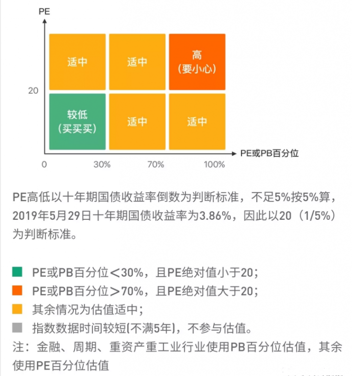 估值的方法有很多,指数基金的估值判断法比较常用的两个指标是:PE(市盈率)、▎PB(市净率)。