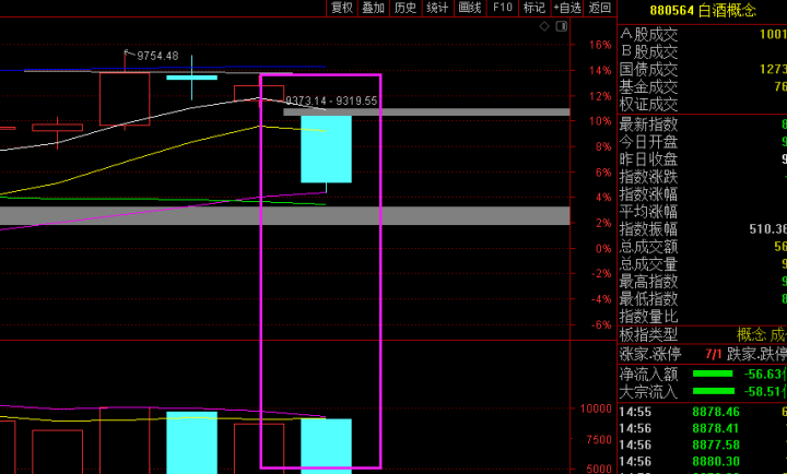 意味着今天A股全天都是以煤炭和白酒等两股力量在多空厮杀,你敢砸盘我就敢拉升,你敢拉升我就敢砸盘;这两股力量扛上了,但其他行业题材股是无辜的,为何白酒能把整个A股都拖下水呢?主要有两大因素。