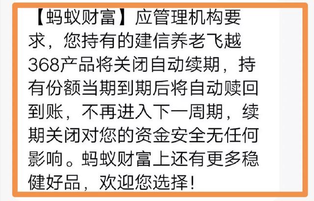 1,支付宝中购买建信飞跃368的客户收到了通知。