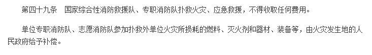 《中华人民共和国消防法》第49条规定的非常详细,专职消防队,志愿消防队参加扑救外单位火灾所损耗的燃料,灭火剂,器材,装备等,都是由火灾发生地政府承担,是不需要当事人缴纳这笔费用的。